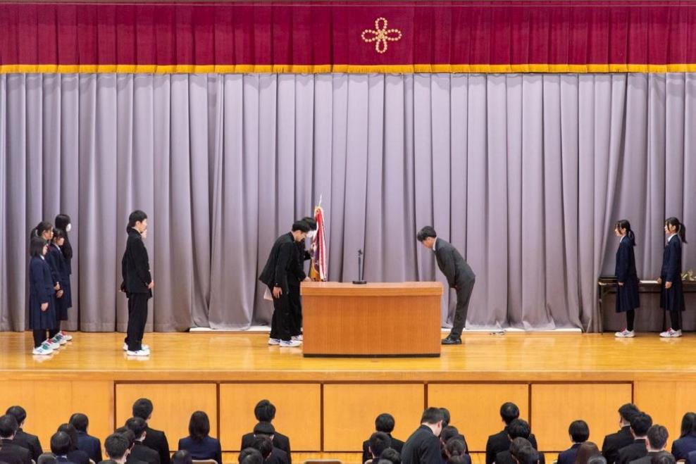 部活動や課外活動等で受賞した生徒が表彰されました。今後の活躍も期待しています。